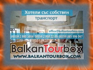 BALKAN TOURBOX Ltd. is a Tourist agency, offering its now numerous clients complete service, in the sphere of tourist and transportation services, as well as the sector’s accompanying insurance, legal, and consulting activities. You could easily reserve place reservations with us for airline tickets, rooms in over 160 thousand hotels the world over, vacation in Greece, vacation in Turkey, vacation in Bulgaria, vacation in Croatia, vacation in Montenegro, trips abroad, cruises, conference events.