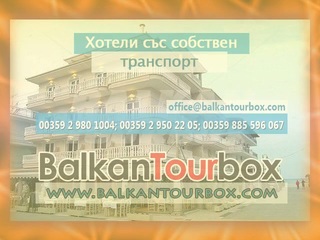 BALKAN TOURBOX Ltd. is a Tourist agency, offering its now numerous clients complete service, in the sphere of tourist and transportation services, as well as the sector’s accompanying insurance, legal, and consulting activities. You could easily reserve place reservations with us for airline tickets, rooms in over 160 thousand hotels the world over, vacation in Greece, vacation in Turkey, vacation in Bulgaria, vacation in Croatia, vacation in Montenegro, trips abroad, cruises, conference events.