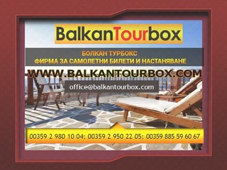 BALKAN TOURBOX Ltd. is a Tourist agency, offering its now numerous clients complete service, in the sphere of tourist and transportation services, as well as the sector’s accompanying insurance, legal, and consulting activities. You could easily reserve place reservations with us for airline tickets, rooms in over 160 thousand hotels the world over, vacation in Greece, vacation in Turkey, vacation in Bulgaria, vacation in Croatia, vacation in Montenegro, trips abroad, cruises, conference events.