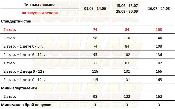 За места в хотела и калкулация на цена ни трябват точни дати от/до, брой нощувки, колко възрастни и деца в стая, навършени години на децата. Ползвайте бутона - Резервирай за да видите всички цени Или се обадете на 02 / 950 22 05, 02 / 980 1004, 0885 596 067