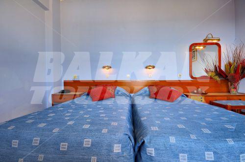 The hotel Astir Beach is located on the beach Laganas in beautiful island of Zante, Greece. This 3-star hotel offers accomodation in 83 air-conditioned guest rooms with satellite TV, direct dial phone, Wi-Fi Internet access (fee), fridge, balcony and bath or shower and hairdryer. The rooms are double and triple with single or double beds. There is a gym, an outdoor swimming pool with children's pool, a gym, bar, a breakfast room and restaurant.This is one of the most popular resorts of the Mediterranean.