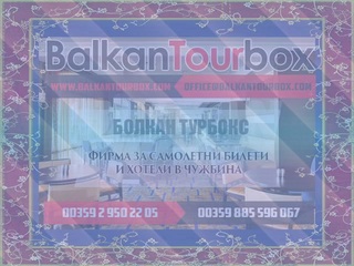 BALKAN TOURBOX Ltd. is a Tourist agency, offering its now numerous clients complete service, in the sphere of tourist and transportation services, as well as the sector’s accompanying insurance, legal, and consulting activities. You could easily reserve place reservations with us for airline tickets, rooms in over 160 thousand hotels the world over, vacation in Greece, vacation in Turkey, vacation in Bulgaria, vacation in Croatia, vacation in Montenegro, trips abroad, cruises, conference events.