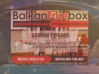 BALKAN TOURBOX Ltd. is a Tourist agency, offering its now numerous clients complete service, in the sphere of tourist and transportation services, as well as the sector’s accompanying insurance, legal, and consulting activities. You could easily reserve place reservations with us for airline tickets, rooms in over 160 thousand hotels the world over, vacation in Greece, vacation in Turkey, vacation in Bulgaria, vacation in Croatia, vacation in Montenegro, trips abroad, cruises, conference events.