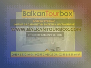 BALKAN TOURBOX Ltd. is a Tourist agency, offering its now numerous clients complete service, in the sphere of tourist and transportation services, as well as the sector’s accompanying insurance, legal, and consulting activities. You could easily reserve place reservations with us for airline tickets, rooms in over 160 thousand hotels the world over, vacation in Greece, vacation in Turkey, vacation in Bulgaria, vacation in Croatia, vacation in Montenegro, trips abroad, cruises, conference events.