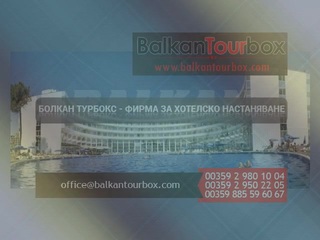 BALKAN TOURBOX Ltd. is a Tourist agency, offering its now numerous clients complete service, in the sphere of tourist and transportation services, as well as the sector’s accompanying insurance, legal, and consulting activities. You could easily reserve place reservations with us for airline tickets, rooms in over 160 thousand hotels the world over, vacation in Greece, vacation in Turkey, vacation in Bulgaria, vacation in Croatia, vacation in Montenegro, trips abroad, cruises, conference events.