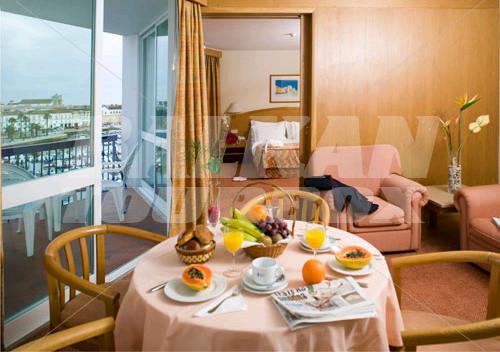The hotel Eva is located in the heart of Faro, the gateway to the Algarve, Portugal, overlooking to the harbour. This 4-star hotel, renovated in 2006, offers accommodation in 134 air-conditioned guest rooms and suites with a cable television, a telephone and a private bathroom with a shower and hairdryer. The hotel Eva has a lobby with reception, a hotel safe, hairdresser, meeting room, cafe, restaurant and bar. There is a sauna, Turkish/steam bath and a gym.Serving parts and other conditions