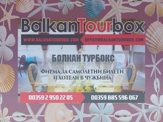 BALKAN TOURBOX Ltd. is a Tourist agency, offering its now numerous clients complete service, in the sphere of tourist and transportation services, as well as the sector’s accompanying insurance, legal, and consulting activities. You could easily reserve place reservations with us for airline tickets, rooms in over 160 thousand hotels the world over, vacation in Greece, vacation in Turkey, vacation in Bulgaria, vacation in Croatia, vacation in Montenegro, trips abroad, cruises, conference events.