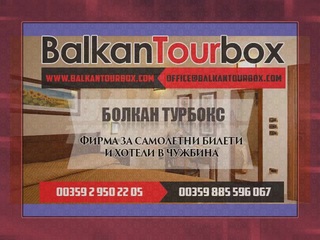 BALKAN TOURBOX Ltd. is a Tourist agency, offering its now numerous clients complete service, in the sphere of tourist and transportation services, as well as the sector’s accompanying insurance, legal, and consulting activities. You could easily reserve place reservations with us for airline tickets, rooms in over 160 thousand hotels the world over, vacation in Greece, vacation in Turkey, vacation in Bulgaria, vacation in Croatia, vacation in Montenegro, trips abroad, cruises, conference events.
