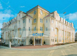 The hotel Achat Messe Leipzig is located in Leipzig, close to the shopping area. The hotel comprises a total of 99 rooms and 6 apartments spread over 5 floors. It offers a 24-hour reception desk, a lift, a safe, 2 conference rooms, a TV and lounge room, a bar and an restaurant. There are Internet terminal, room and laundry services, car parking spaces. There is nearby beautiful golf course.Serving parts and other conditions