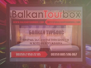 BALKAN TOURBOX Ltd. is a Tourist agency, offering its now numerous clients complete service, in the sphere of tourist and transportation services, as well as the sector’s accompanying insurance, legal, and consulting activities. You could easily reserve place reservations with us for airline tickets, rooms in over 160 thousand hotels the world over, vacation in Greece, vacation in Turkey, vacation in Bulgaria, vacation in Croatia, vacation in Montenegro, trips abroad, cruises, conference events.