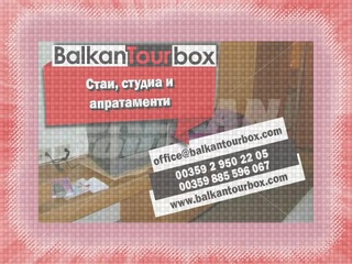 BALKAN TOURBOX Ltd. is a Tourist agency, offering its now numerous clients complete service, in the sphere of tourist and transportation services, as well as the sector’s accompanying insurance, legal, and consulting activities. You could easily reserve place reservations with us for airline tickets, rooms in over 160 thousand hotels the world over, vacation in Greece, vacation in Turkey, vacation in Bulgaria, vacation in Croatia, vacation in Montenegro, trips abroad, cruises, conference events.