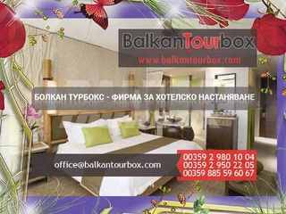 BALKAN TOURBOX Ltd. is a Tourist agency, offering its now numerous clients complete service, in the sphere of tourist and transportation services, as well as the sector’s accompanying insurance, legal, and consulting activities. You could easily reserve place reservations with us for airline tickets, rooms in over 160 thousand hotels the world over, vacation in Greece, vacation in Turkey, vacation in Bulgaria, vacation in Croatia, vacation in Montenegro, trips abroad, cruises, conference events.