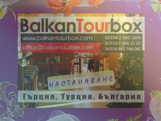 BALKAN TOURBOX Ltd. is a Tourist agency, offering its now numerous clients complete service, in the sphere of tourist and transportation services, as well as the sector’s accompanying insurance, legal, and consulting activities. You could easily reserve place reservations with us for airline tickets, rooms in over 160 thousand hotels the world over, vacation in Greece, vacation in Turkey, vacation in Bulgaria, vacation in Croatia, vacation in Montenegro, trips abroad, cruises, conference events.