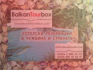 BALKAN TOURBOX Ltd. is a Tourist agency, offering its now numerous clients complete service, in the sphere of tourist and transportation services, as well as the sector’s accompanying insurance, legal, and consulting activities. You could easily reserve place reservations with us for airline tickets, rooms in over 160 thousand hotels the world over, vacation in Greece, vacation in Turkey, vacation in Bulgaria, vacation in Croatia, vacation in Montenegro, trips abroad, cruises, conference events.