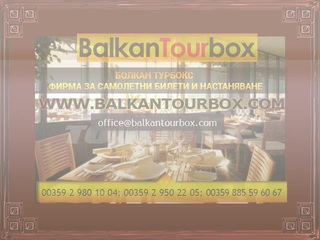 BALKAN TOURBOX Ltd. is a Tourist agency, offering its now numerous clients complete service, in the sphere of tourist and transportation services, as well as the sector’s accompanying insurance, legal, and consulting activities. You could easily reserve place reservations with us for airline tickets, rooms in over 160 thousand hotels the world over, vacation in Greece, vacation in Turkey, vacation in Bulgaria, vacation in Croatia, vacation in Montenegro, trips abroad, cruises, conference events.