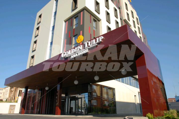 Hotel Golden Tulip Ana Dome is situated about  a few minutes away from downtown of Cluj-Napoca, Romania. This 4-star hotel offers 109 air conditioned and soundproof guest rooms with free Wi-Fi access, cable TV, a minibar and a private bathroom. The hotel Golden Tulip Ana Dome has a lobby with 24-hour reception, bar, restaurant with terrace and two meeting rooms. There is a gym and sauna.
