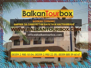 BALKAN TOURBOX Ltd. is a Tourist agency, offering its now numerous clients complete service, in the sphere of tourist and transportation services, as well as the sector’s accompanying insurance, legal, and consulting activities. You could easily reserve place reservations with us for airline tickets, rooms in over 160 thousand hotels the world over, vacation in Greece, vacation in Turkey, vacation in Bulgaria, vacation in Croatia, vacation in Montenegro, trips abroad, cruises, conference events.