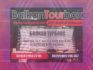 BALKAN TOURBOX Ltd. is a Tourist agency, offering its now numerous clients complete service, in the sphere of tourist and transportation services, as well as the sector’s accompanying insurance, legal, and consulting activities. You could easily reserve place reservations with us for airline tickets, rooms in over 160 thousand hotels the world over, vacation in Greece, vacation in Turkey, vacation in Bulgaria, vacation in Croatia, vacation in Montenegro, trips abroad, cruises, conference events.