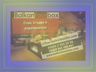 BALKAN TOURBOX Ltd. is a Tourist agency, offering its now numerous clients complete service, in the sphere of tourist and transportation services, as well as the sector’s accompanying insurance, legal, and consulting activities. You could easily reserve place reservations with us for airline tickets, rooms in over 160 thousand hotels the world over, vacation in Greece, vacation in Turkey, vacation in Bulgaria, vacation in Croatia, vacation in Montenegro, trips abroad, cruises, conference events.