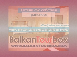 BALKAN TOURBOX Ltd. is a Tourist agency, offering its now numerous clients complete service, in the sphere of tourist and transportation services, as well as the sector’s accompanying insurance, legal, and consulting activities. You could easily reserve place reservations with us for airline tickets, rooms in over 160 thousand hotels the world over, vacation in Greece, vacation in Turkey, vacation in Bulgaria, vacation in Croatia, vacation in Montenegro, trips abroad, cruises, conference events.