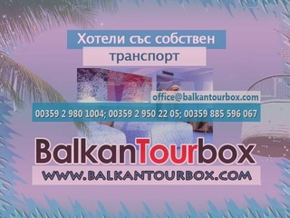 BALKAN TOURBOX Ltd. is a Tourist agency, offering its now numerous clients complete service, in the sphere of tourist and transportation services, as well as the sector’s accompanying insurance, legal, and consulting activities. You could easily reserve place reservations with us for airline tickets, rooms in over 160 thousand hotels the world over, vacation in Greece, vacation in Turkey, vacation in Bulgaria, vacation in Croatia, vacation in Montenegro, trips abroad, cruises, conference events.