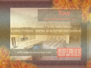 BALKAN TOURBOX Ltd. is a Tourist agency, offering its now numerous clients complete service, in the sphere of tourist and transportation services, as well as the sector’s accompanying insurance, legal, and consulting activities. You could easily reserve place reservations with us for airline tickets, rooms in over 160 thousand hotels the world over, vacation in Greece, vacation in Turkey, vacation in Bulgaria, vacation in Croatia, vacation in Montenegro, trips abroad, cruises, conference events.